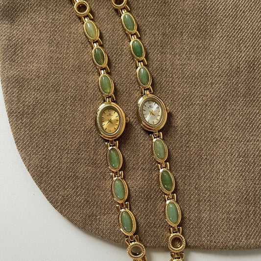 Montre-bracelet pour femmes en quartz avec bracelet en jade petit ovale et diamants