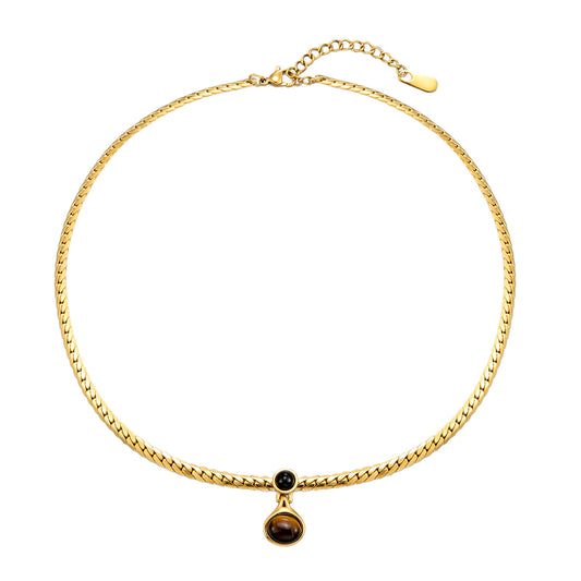 Collier Pendentif Vintage en Œil de Tigre - Élégance et Luxe Femmes