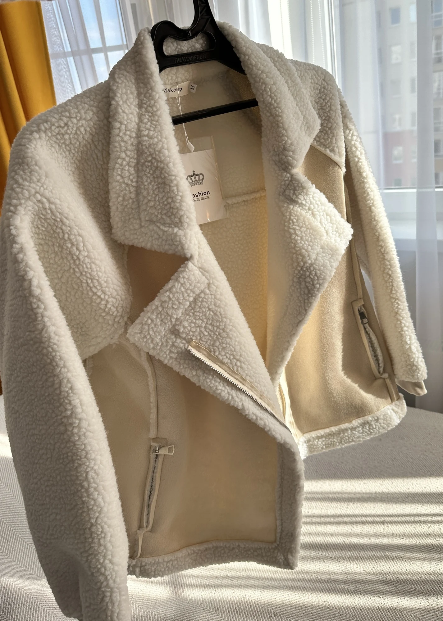 Dans l'ensemble, la veste n'est pas mal, mais les manches sont un peu courtes. Pour mes mesures, 50 cm de haut et 162 cm de bas, elle me va bien ; si elle avait été une taille plus grande, ce serait encore mieux. Livraison en 9 jours, très rapide. Bien sûr, ce n'est pas une veste d'hiver, mais il ne faisait pas froid avec plus de 5 degrés pour un costume en velours fin. Bon, bien sûr, ce n'est pas de la laine de mouton ; tout est synthétique, tant le cuir que la fourrure.